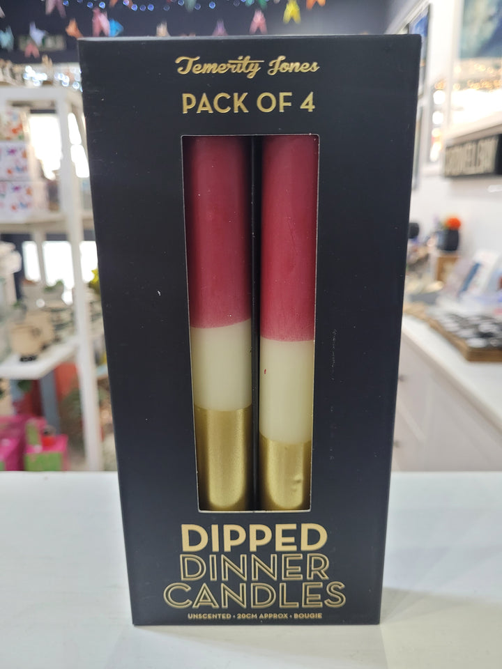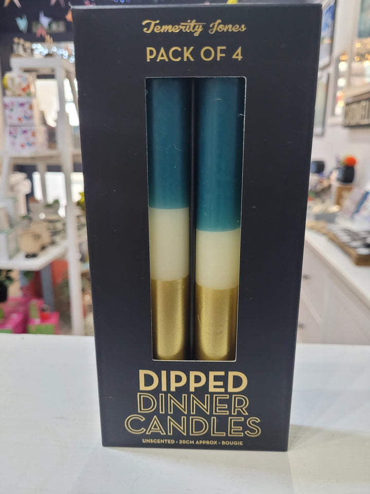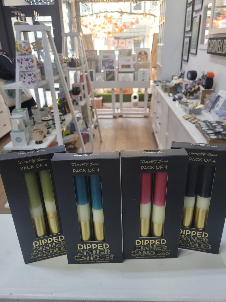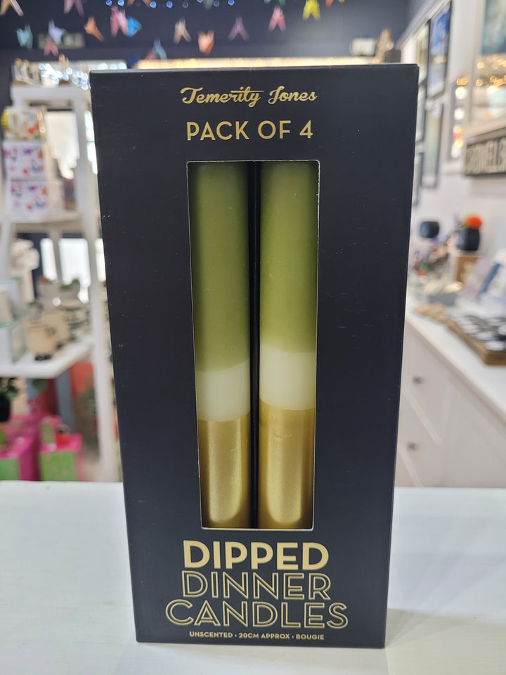 Spice up your dinner table with our box of 4 dipped Gold Dinner Candles.