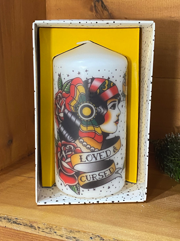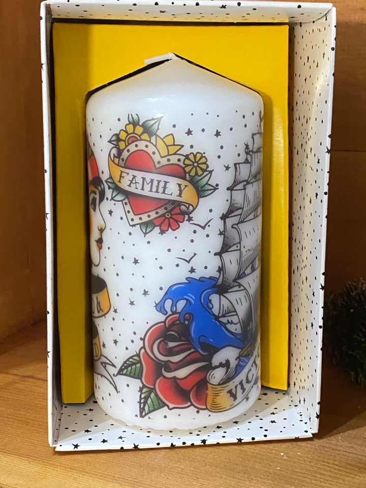 Vintage Tattoo Pillar Candle